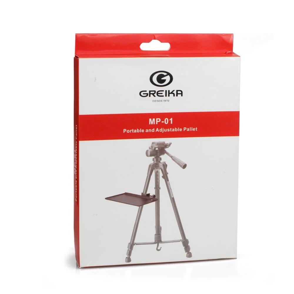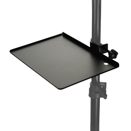 A bandeja tem 20 centímetros de comprimento e 14 centímetros de largura, com bordas levemente elevadas para garantir que seu acessório não caia do suporte. Possui um clamp braçadeira acoplado que é compatível com superfícies, cilíndricas ou retas, de até 3cm.