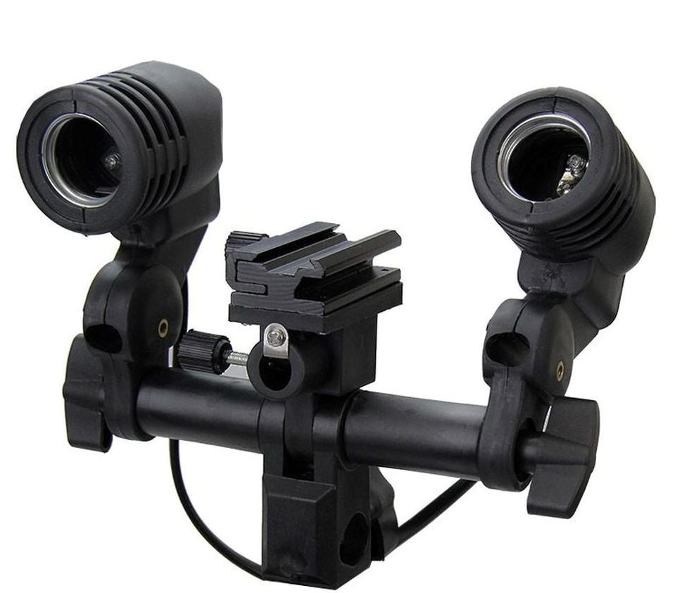 É fabricado em plástico rígido, possui chave liga/desliga, cabo de força, socket para lâmpadas com rosca tipo E27 (lâmpada comum), leve e resistente é perfeito para quem deseja montar um estúdio fotográfico. Articulado pode ser apontado em qualquer direção. Indicado para acoplar uma sombrinha (refletora ou difusora) e uma lâmpada ou flash auxiliar E27. Além do suporte para sombinha, esse soquete possui sapata para flash.